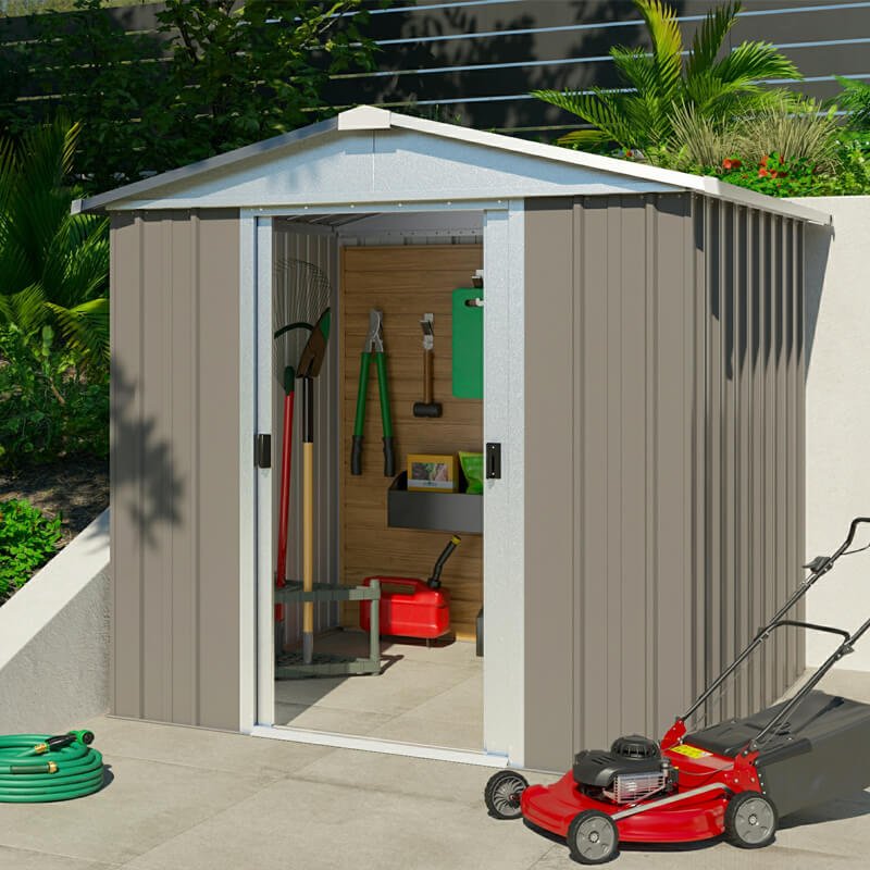 Reassuringly robust, designed with extra height and backed by a superb 15-year anti-rust guarantee, the 6’8 x 7’2 Yardmaster Tall Stone Grey Metal Shed (2.02m x 2.17m) is the perfect place to safely house your expensive tools, garden furniture and bicycles. A Premium Metal Shed with Extra Headroom Coating your shed in preservative and repairing torn roof felt will be jobs from the past once you’ve purchased this maintenance-free garden shed. Built from high-tensile aluminium hot-dipped galvanised steel, which will never warp, crack or split, even in extreme weather conditions, this superior metal shed is also completely impervious to damage from bugs and pests. A traditional apex roof and a gorgeous baked-on stone-grey finish ensure that this garden storage shed doesn’t just boast brawn but beauty too, whilst the 7 layers of protection eliminate any risk of corrosion and ensure the shed’s immaculate appearance will endure for many years to come. Easy Interior Access and Generous Height You can gain easy access to your stored items via sliding double doors, which are overlapping, include a padlock fixing (padlock not included) and are fitted with anti-tamper bolts, so rest assured that your prized possessions will be completely shielded from the elements and safe from unwanted attention. Extra tall walls and high gables make this 6×7 shed suitable for even our tallest customers, whilst ventilation slots along the ridge and eaves ensures optimum conditions for your stored items. Smooth Assembly Process With dimensions of 199cm x 202cm x 217cm, this tall garden shed is supplied with a free anchor kit, clearly-numbered parts, an assembly manual, rust-resistant screws and UK-based telephone support to help you achieve a simple, stress-free assembly. Please note that this metal shed comes without a floor (unless you select the optional floor support kit) and should be erected on a level concrete or paved base. The optional floor support kit does not include a timber floor. If you purchase the floor support kit, it cannot be returned alone should you decide not to build a floor. Free Shipping Delivery is free to most UK addresses. Key Features Tall metal garden shed 15-year anti-rust guarantee Made in the UK Built from high-tensile aluminium and hot-dipped galvanised steel 7 protective layers to prevent corrosion Lockable sliding double doors include anti-tamper bolts Ventilation along the ridge and eaves Completely maintenance-free Includes free anchor kit, numbered parts and rust-resistant screws Comes without flooring, but optional floor support kit is available in the options Free delivery to most UK addresses