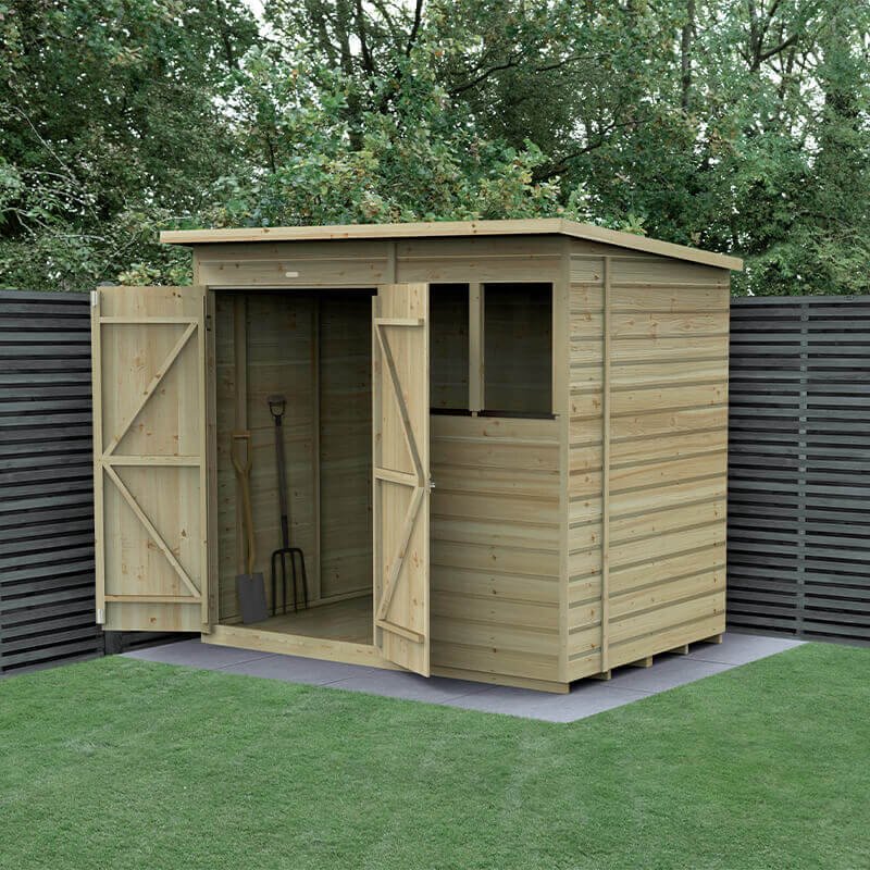 7′ x 5′ Forest Beckwood 25yr Guarantee Shiplap Pressure Treated Double Door Pent Wooden Shed (2.26m x 1.7m)