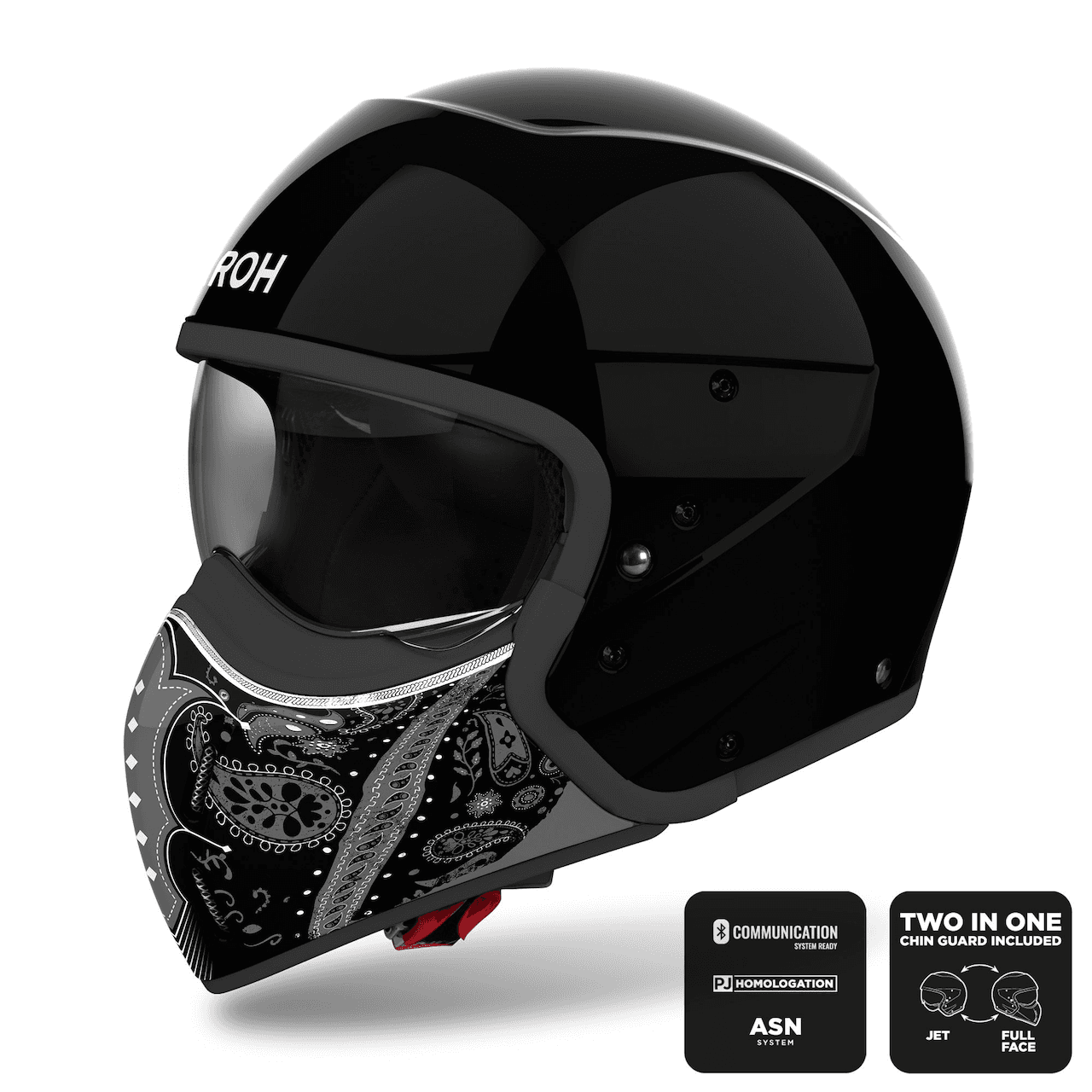 AIROH J110 HELMET – PAESLY BLACK GLOSSDesign with a captivating and absolutely unmistakable style, this helmet ignites your desire to ride by making your adventurous and explorer spirit shine. Versatile and ready for anything, a 2 in 1 helmet devised for those who dont want to settle with a standard product, it is perfect for those who do not want to compromise, especially in terms of performance, and for those who want to feel free to enjoy any adventure. Aggressive lines, with a vaguely vintage and refined style, are completed with brilliant graphics and colors aimed at satisfying even the most demanding bikers. Key FeaturesTwo different Composite Carbon shell sizesOptimized inside the wind tunnelECE 2206 approvedComposite CarbonMicrometric retention systemCoolmax ®Superior Performance Technical Textiles 2dry Microsense SanitedRemovable and WashableHypoallergenicRemovable summer nose coverJet version tapsStop wind Sizing GuideXS 53-54S 55-56M 57-58L 59-60XL 61-622XL 63-64 Motorcycle helmets are designed for a close and comfortable fit but can change size with use. To find the correct size, we would recommend seeking fitment advice, and trying the helmet before purchasing. Please use the size guide to help in finding which size helmet you need, note this is only a guide and cannot determine an exact size.Tinted visors are for illustration purposes only, not for UK Road use, all motorcycle helmets are supplied with a clear visor.Quick code-ARH213