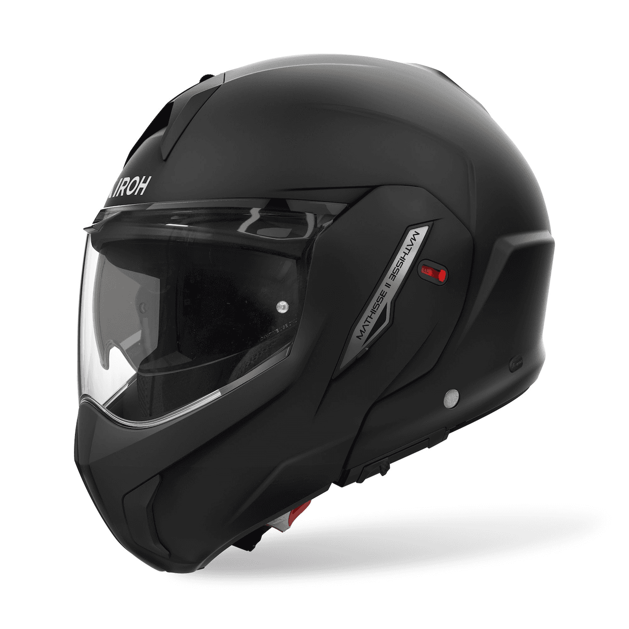 AIROH MATHISSE II HELMET – COLOR BLACK MATTThe Airoh Mathisse II with its unique design that offers top-tier high tech features including a 180 chin-guard that rotates around onto the back of the helmet, Flip down integrated tinted sun visor and Pinlock-ready visor (with Pinlock insert already installed) all serve to enhances the versatility of this all-purpose helmet, converting from a full-face to an open-face helmet in seconds! The HRT (High Resistant Thermoplastic) outer shell offers superb comfort and an over-refined ventilation system provides the best rider comfort possible. The retractable Sun Visor, micrometric retention system, Pinlock and Stop Wind make it the perfect choice to drive you everywhere with class and in style Key FeaturesMicrometric ratchet closure systemVentilation at chin, front and topRear extractionVisor (scratch and UV resistant, extra-wide vision Pinlock ready) with visor quick-change mechanismIntegrated sun visor (tinted and UV resistant)Hypoallergenic, removable and washable liningWind deflectorSizing GuideXS 53-54S 55-56M 57-58L 59-60XL 61-622XL 63-64 Motorcycle helmets are designed for a close and comfortable fit but can change size with use. To find the correct size, we would recommend seeking fitment advice, and trying the helmet before purchasing. Please use the size guide to help in finding which size helmet you need, note this is only a guide and cannot determine an exact size.Tinted visors are for illustration purposes only, not for UK Road use, all motorcycle helmets are supplied with a clear visor.Quick code-ARH238