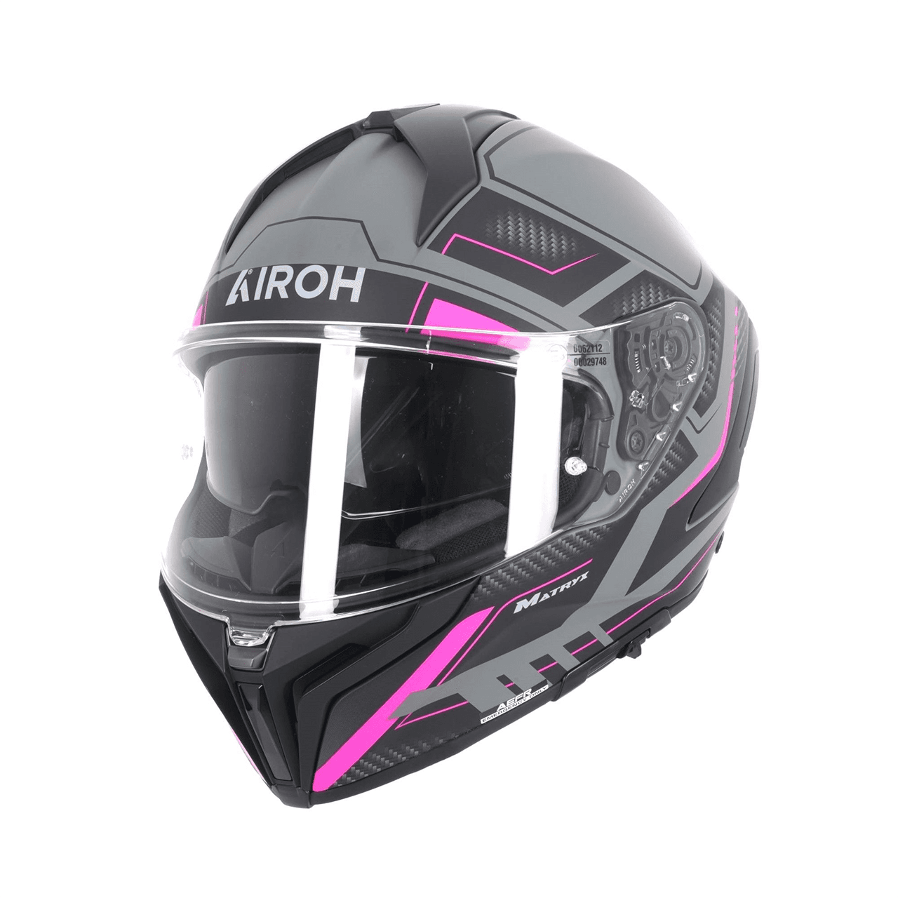 AIROH MATRYX HELMET – ROCKET PINK MATTDetermined, aggressive, self-confident. The new Matryx is the ideal travel companion to face any motorcycle adventure, even the most demanding.The helmet design is completed by captivating graphics and colors, available in both shell sizes.Its state-of-the-art ventilation system, designed inside the Airoh wind tunnel, enhances driving pleasure and, thanks to the large visor equipped with the innovative A3S (Airoh Automatic AntiFog System), combined with the central visor locking system, you will be able to have maximum control over every detail, without ever compromising on safety.Choose your route, overcome your limits, bravely face the most beautiful journey of your life.ts state-of-the-art ventilation system designed inside the wind tunnelinnovative A3S (Airoh Automatic AntiFog System)central visor locking systemECE2206 approvedComposite CarbonDD Ring retenion systemExtra wide visionATVR (Airoh Tool-less Visor Removal)Coolmax ®Superior Performance Technical Textiles 2dry Microsense SanitedRemovable and WashableHypoallergenicStopwindPinlock 120XLT Sizing GuideXS 53-54S 55-56M 57-58L 59-60XL 61-622XL 63-64 Motorcycle helmets are designed for a close and comfortable fit but can change size with use. To find the correct size, we would recommend seeking fitment advice, and trying the helmet before purchasing. Please use the size guide to help in finding which size helmet you need, note this is only a guide and cannot determine an exact size.Tinted visors are for illustration purposes only, not for UK Road use, all motorcycle helmets are supplied with a clear visor.Quick code-ARH232