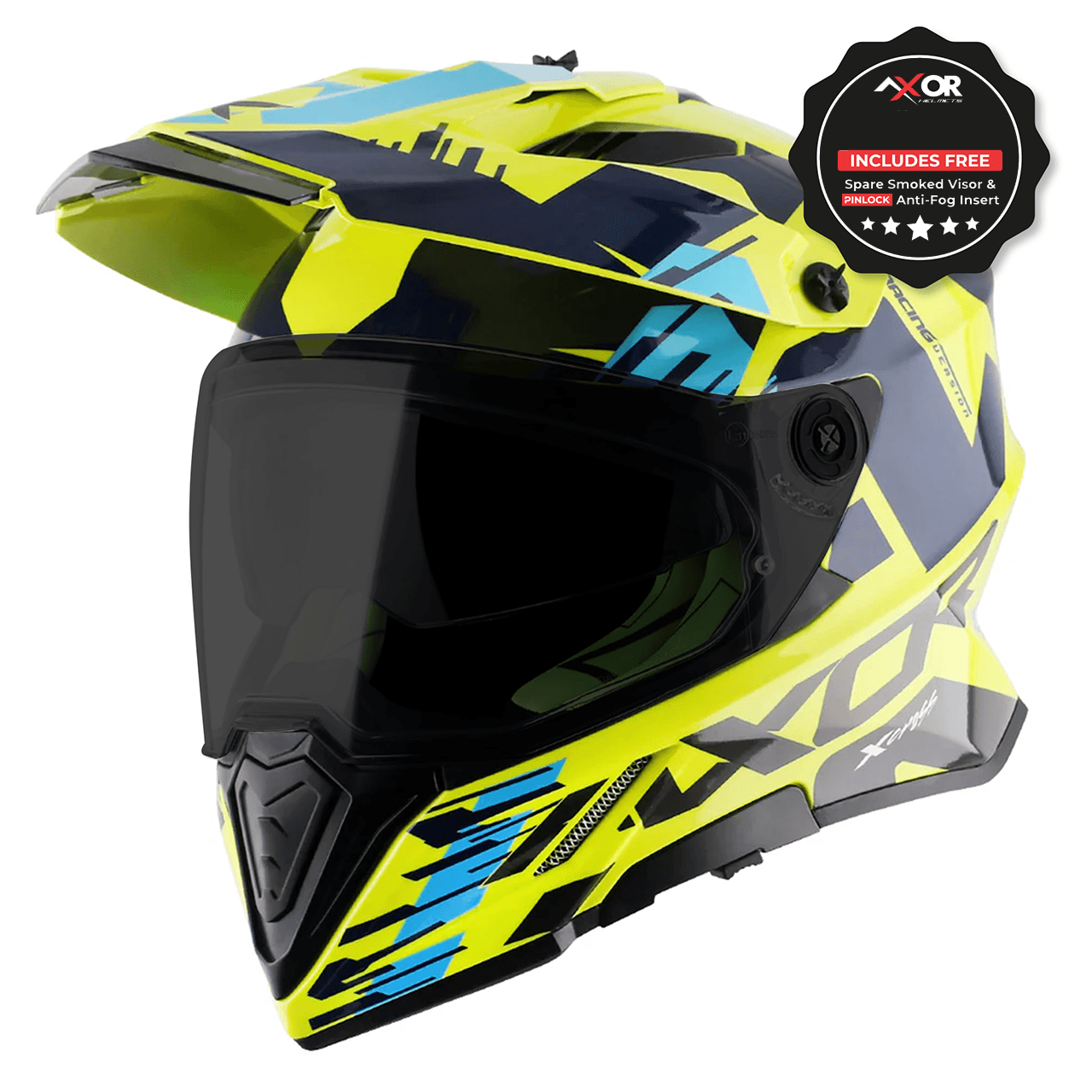 Specification: Axor X-Cross Adventure Motorcycle Helmet Neon Yellow/Blue Gloss