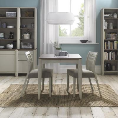 Specification: Bentley Designs Bergen Grey Washed Oak 2 to 4 Seater Extending Dining Table with 2 Low Slatted Back Titanium Fabric Chairs