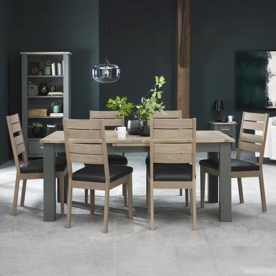 Specification: Bentley Designs Oakham Dark Grey and Scandi 6 to 8 Seater Extending Dining Table with 6 Scandi Oak Chairs in Dark Grey Bonded Leather