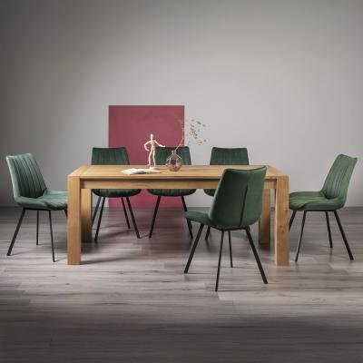 Bentley Designs Turin Light Oak 6-10 Seater Extending Dining Table with 8 Fontana Green Velvet Chairs