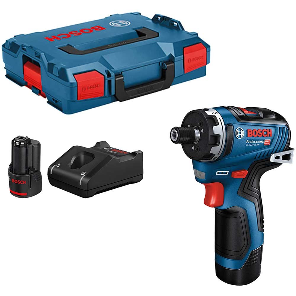 Bosch GSR 12V-35 HX 12v Cordless Brushless Hex Drill Driver 2 x 3ah Li-ion Battery Charger Case