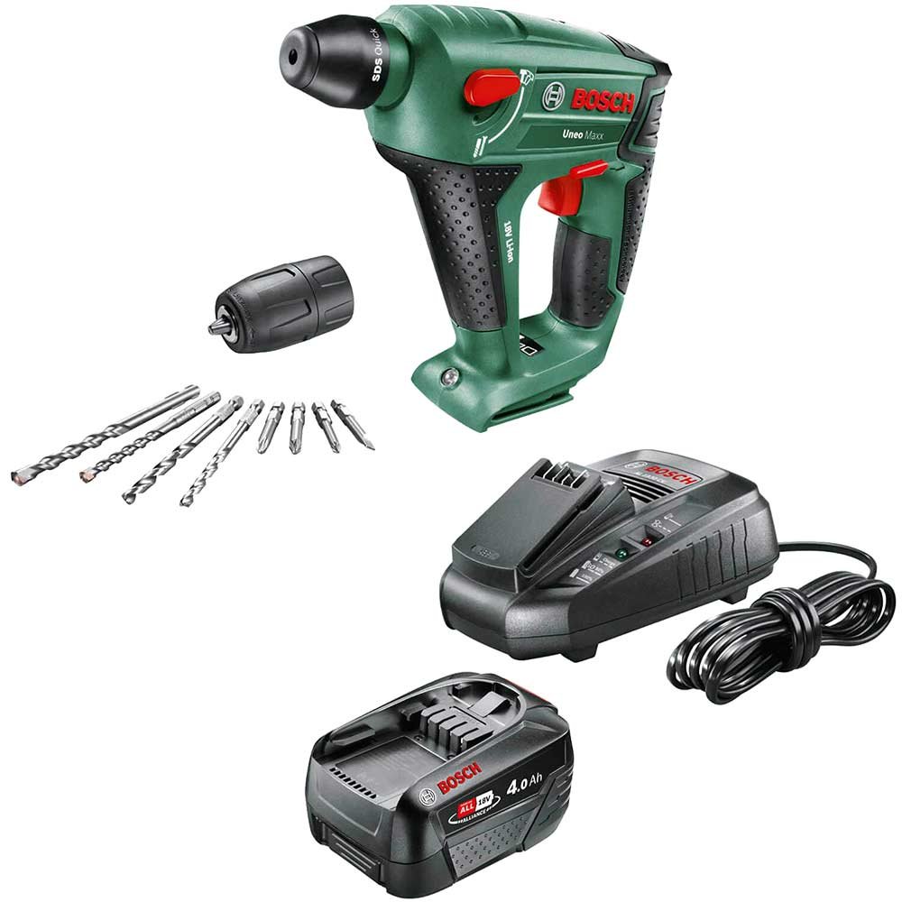 Specification: Bosch UNEO MAXX 18 LI P4A 18v Cordless Rotary Hammer Drill 1 x 4ah Li-ion Battery Charger No Case