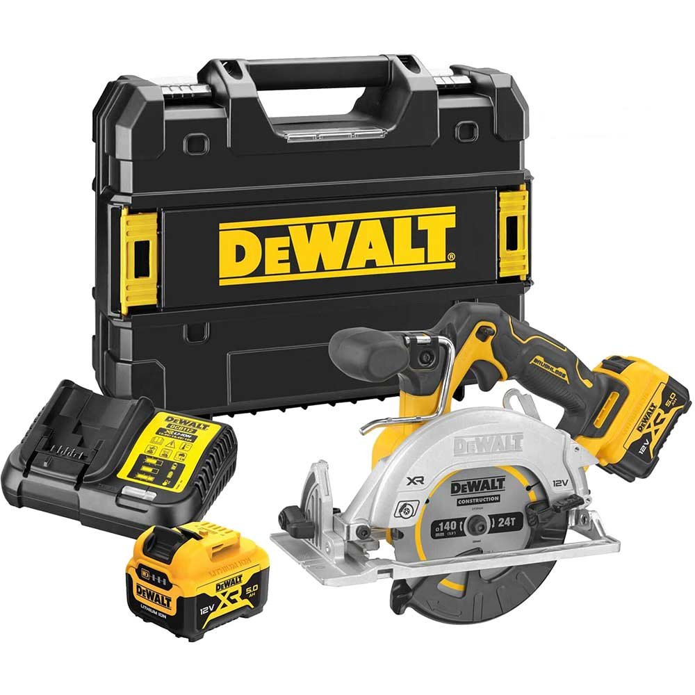 Specification: DeWalt DCS512 12v XR Brushless Circular Saw 140mm 2 x 5ah Li-ion Battery Charger Case