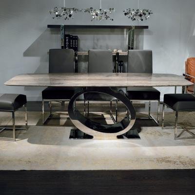 Eye Marble Boxed Edge Dining Table with Chrome Pedestal Base – Variation Available