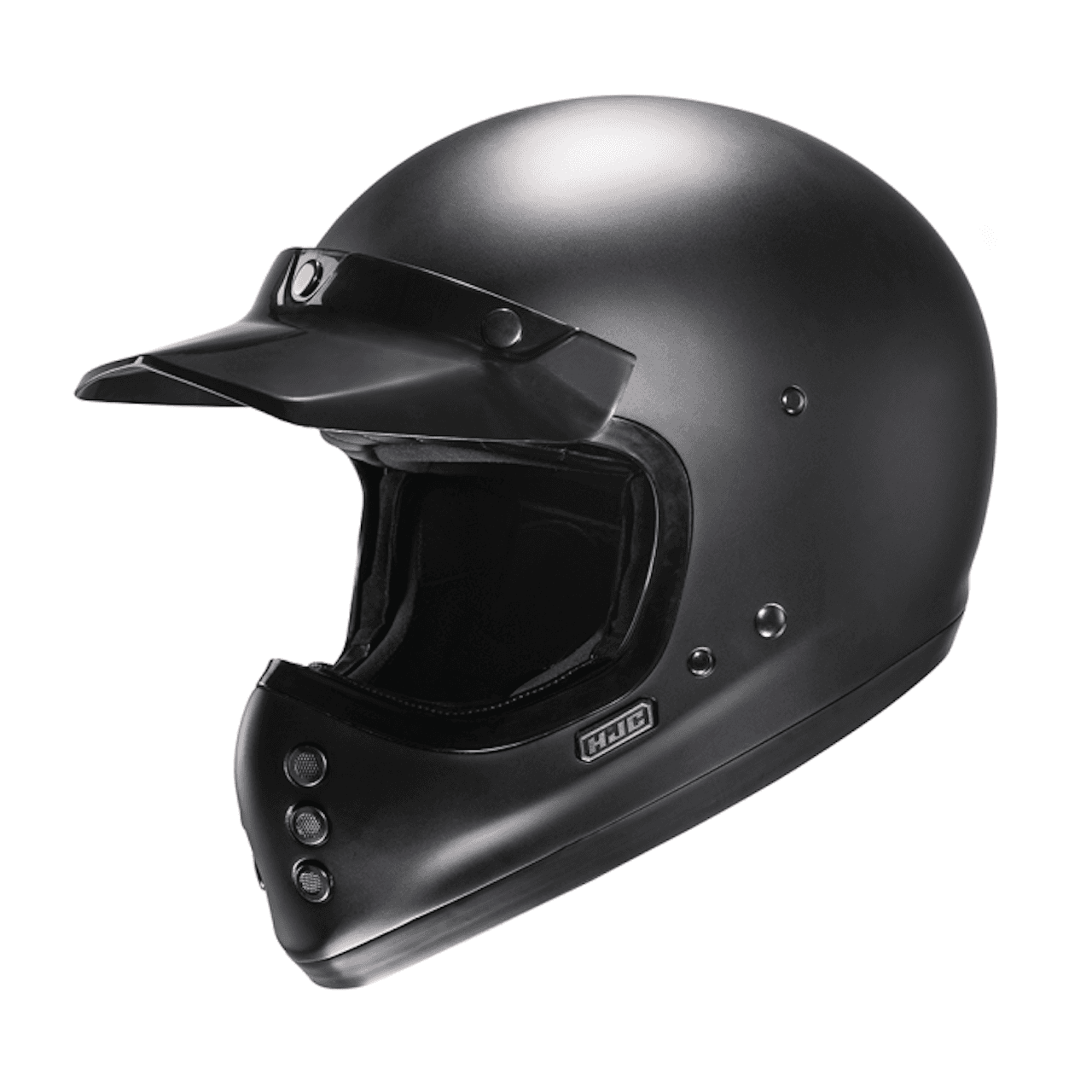 HJC V60 PLAIN HELMET MATT BLACK FULL FACEClassic styling with a modern twist. Inspired by the original FG-01 from the 1980s, the V60 goes beyond the vintage look with new-age features such as a lightweight fibreglass shell, a large inner IS-10 sun visor, built-in speaker pockets, removable and washable interior, and emergency release cheek pads for extra safety. The V60 also includes a removable 3-snap peak visor to complete the retro look.Key Features Advanced Fibreglass Composite Shell: Lightweight, superior fit and comfort using advanced CAD technology Classic design helmet with modern features Goggle friendly Internal Visor (Shield): deploys quickly and easily, clear vision, anti-scratch coated Super Cool: Moisture-wicking and dry Crown and cheek pads: Removable and washable Cheek pads: Interchangeable throughout all sizes Emergency Kit (cheek pad) allows quick and safe removal in an emergency situation Glasses grooves: Accommodates riders with eyewear ACU approvedSizing Guide (cm)XS – 53-54S – 55-56M – 57-58L – 59-60XL – 61-622XL – 63-64 Motorcycle helmets are designed for a close and comfortable fit but can change size with use. To find the correct size, we would recommend seeking fitment advice, and trying the helmet before purchasing. Please use the size guide to help in finding which size helmet you need, note this is only a guide and cannot determine an exact size.Quick code-V60MB
