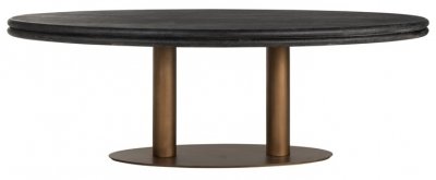 Specification: Macaron Rustic Black Oak and Brushed Gold 10 Seater Oval Pedestal Dining Table