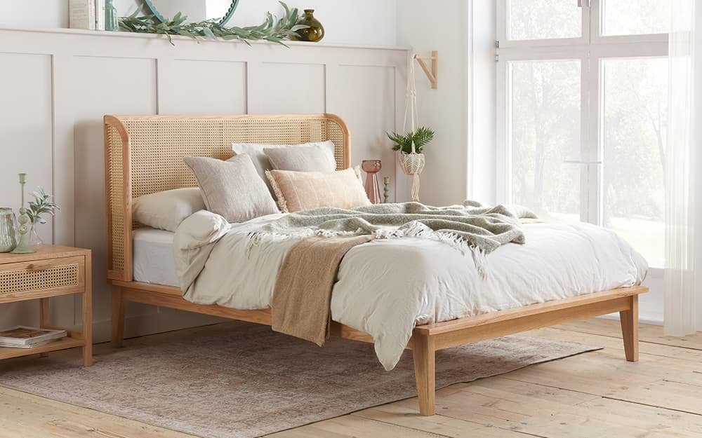 Birlea Astrid Wooden Rattan Bed Frame, Double