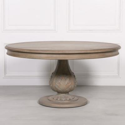 Rustic Washed Wood 6 Seater Round Pedestal Dining Table – 150cm