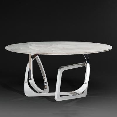 Tangle Marble Round Dining Table with Stainless Steel Pedestal Base – Variation Available
